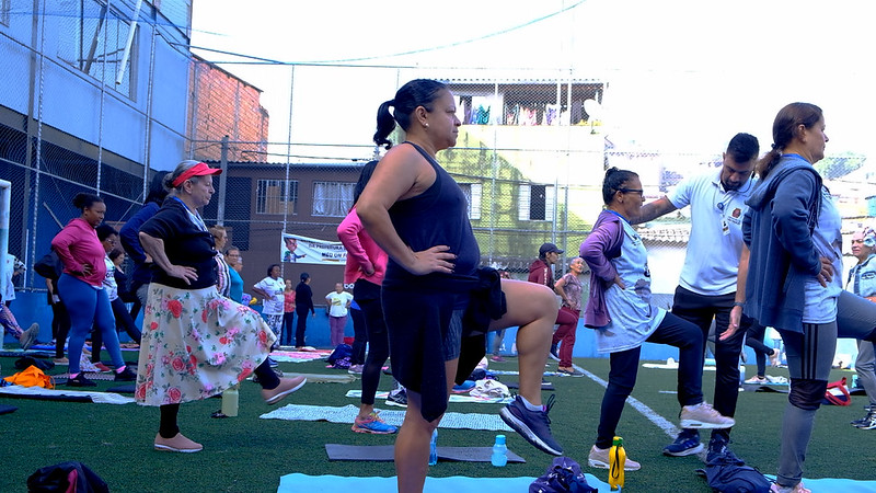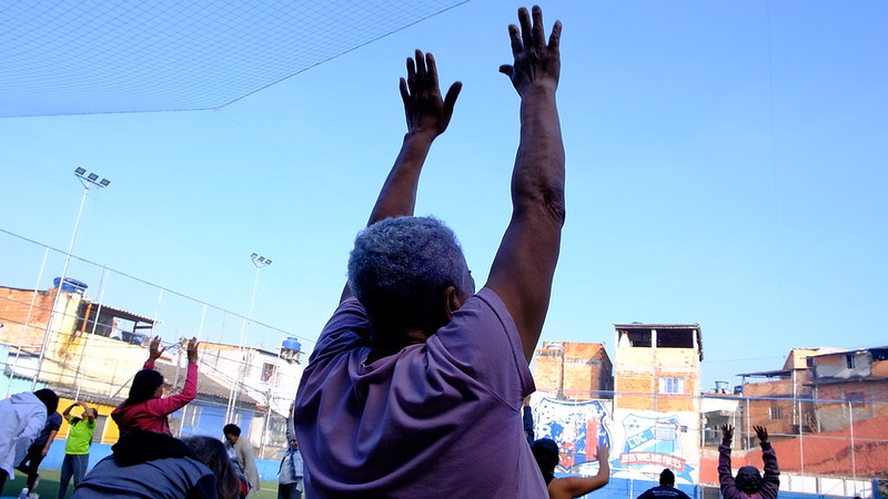“Depois que eu comecei a vir pra cá, aposentei a bengala e me sinto bem melhor”, conta Luiza Helena Cerqueira, de 70 anos, sobre a sua participação no projeto Pilates na Quebrada, promovido pela Unidade Básica de Saúde (UBS) Parque Santo Antônio II, que leva a atividade para a quadra da Central Única das Favelas (Cufa) no Parque Santo Antônio, na zona sul da capital.