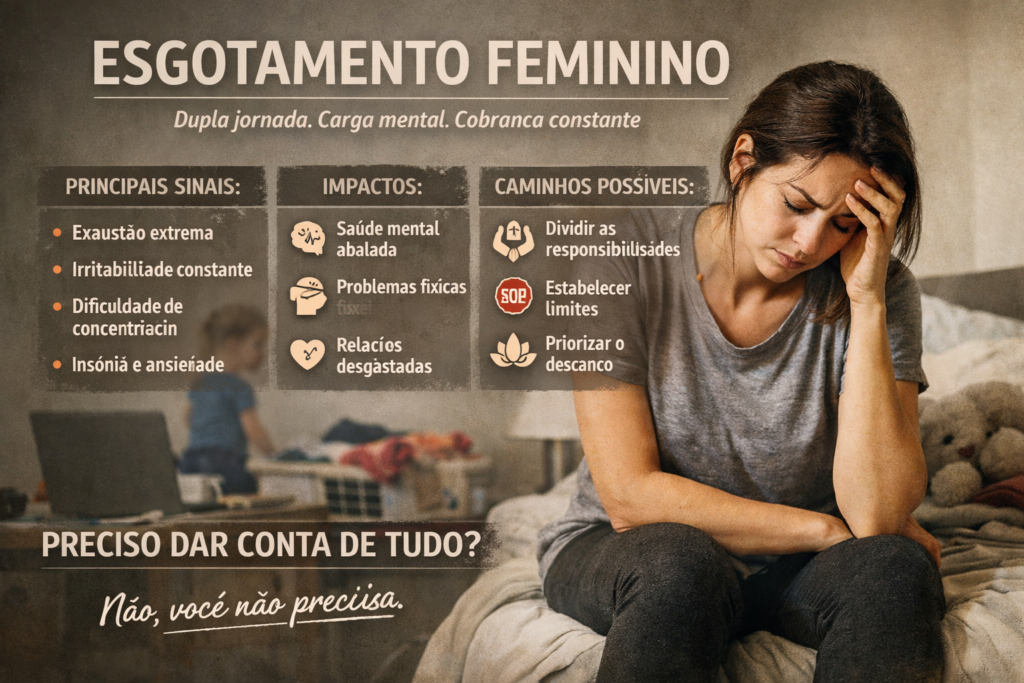 Esse acúmulo constante gera um desgaste silencioso. Ansiedade, exaustão emocional, sensação de insuficiência e culpa passam a fazer parte da rotina. Mesmo quando fazem muito, muitas mulheres sentem que nunca é o suficiente.